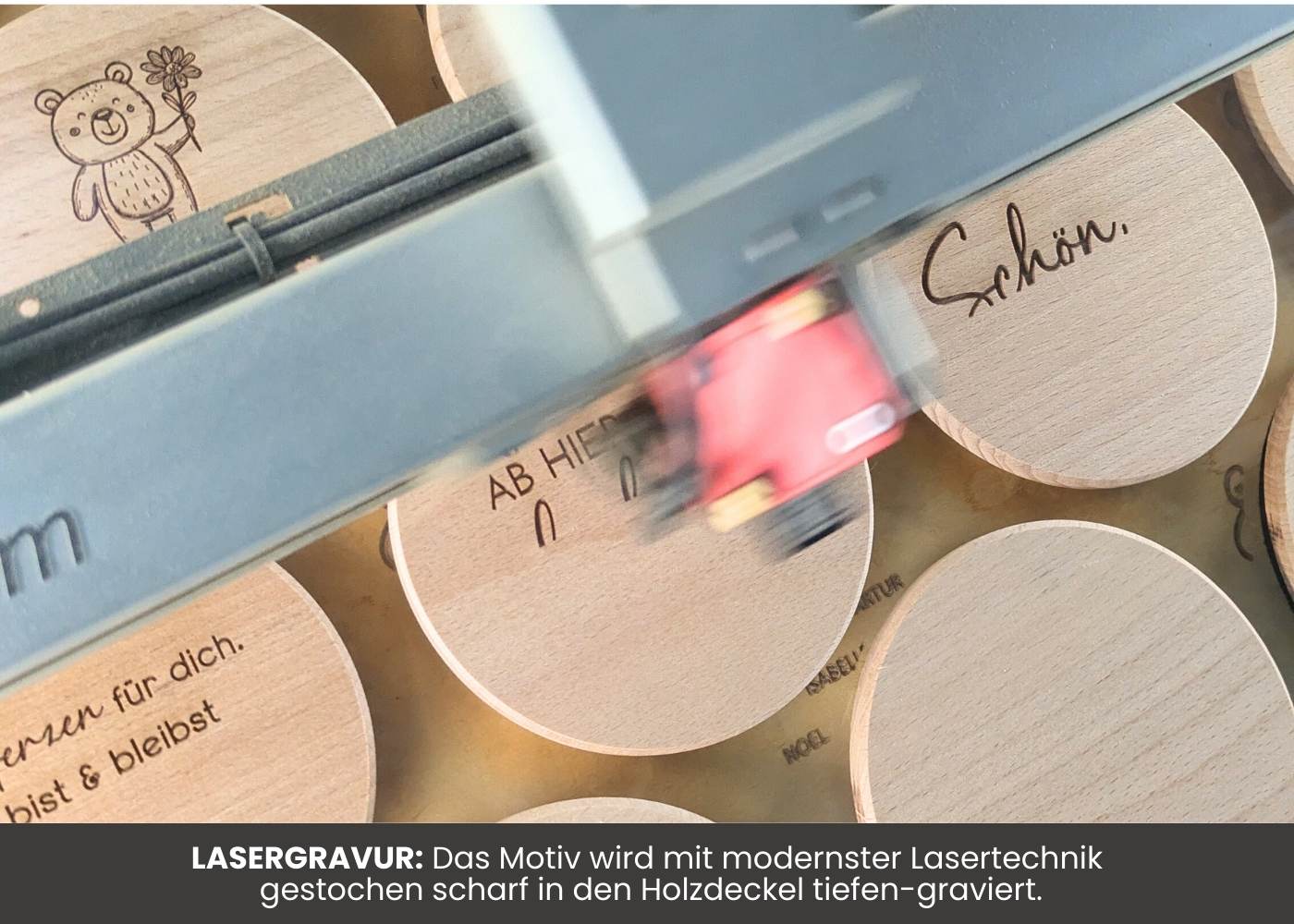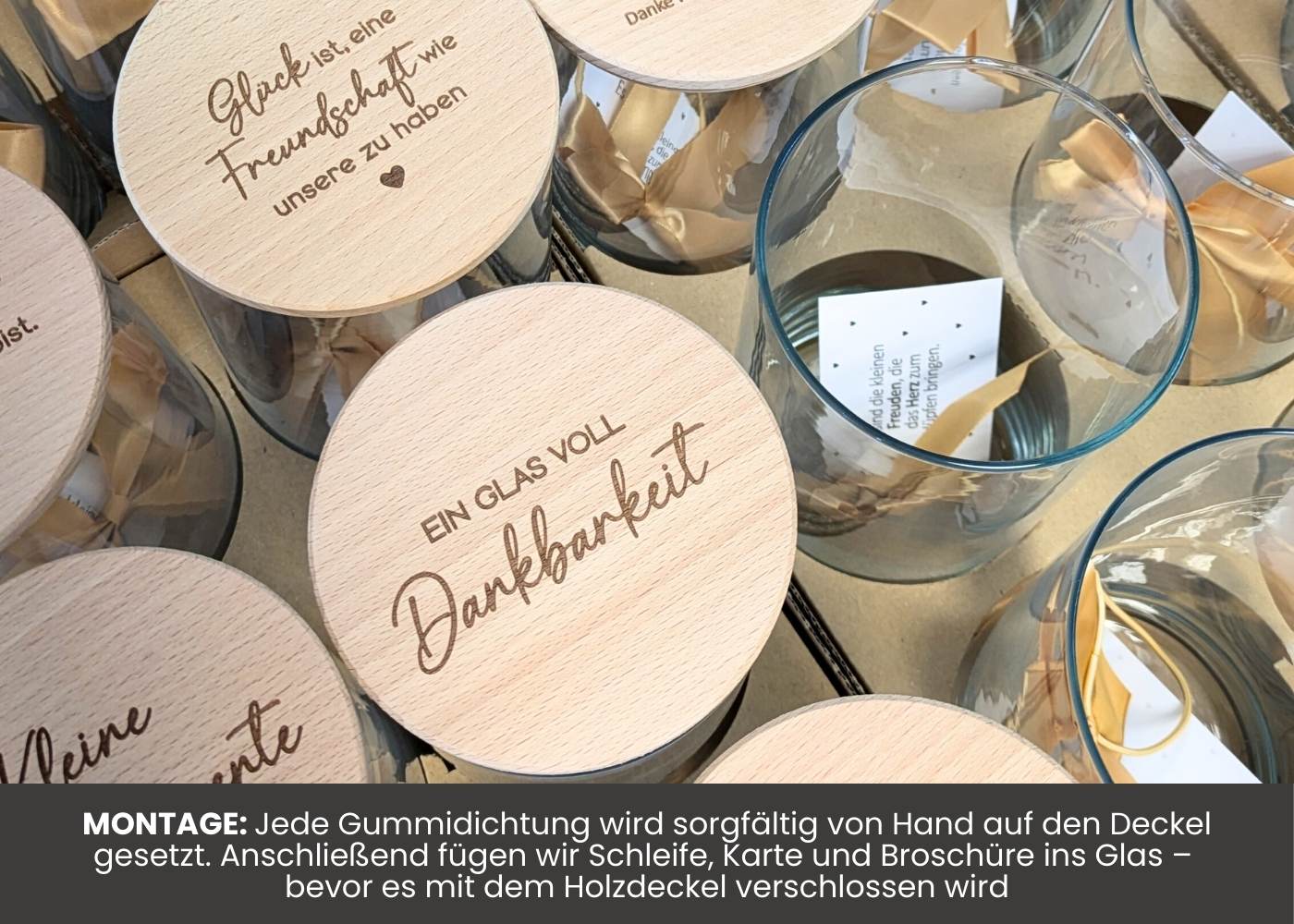 Unsere Reise begann 2021 mit handgemachten Dekoartikeln aus Holz. Heute widmen wir uns ganz dem, was unsere Kunden am meisten berührt hat: dem Geschenkglas. Gemeinsam mit unserem Team fertigen wir jedes einzelne Glas direkt bei uns in Magdeburg.